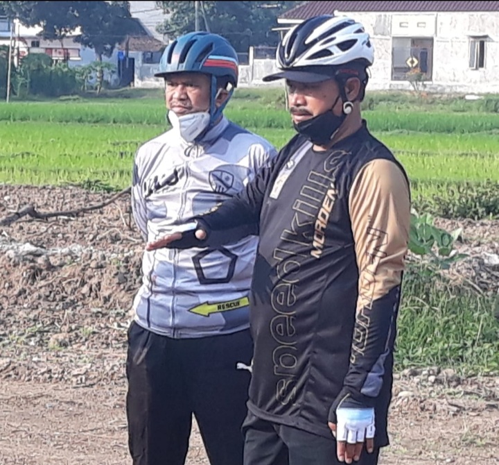 (Walikota Madiun Drs.H maidi saat meninjau lokasi perumahan di selah acara gowes)