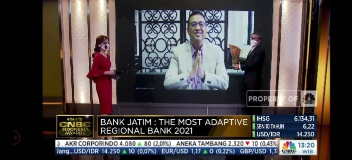 JAKARTA,KRJ.COM . | PT Bank Pembangunan Daerah Jawa Timur Tbk. (bankjatim) kembali torehkan prestasi dalam ajang CNBC Awards 2021. bankjatim berhasil meraih penghargaan tersebut karena dinilai memiliki keunggulan dalam hal adaptasi atau menciptakan terobosan yang bersifat inovatif, serta mampu menjaga dominasi dari sisi pangsa pasar. Kegiatan pada (10/09) 2021
